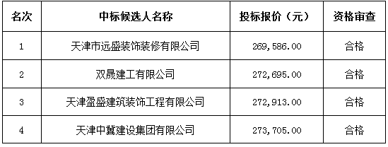 MIG金融大厦车道安装钢架雨棚工程(招标编号:SFBWY/ZB(WX)-2019-008),于2019年11月6日在集团内外网发布招标公告,招标控制价27.57万元,评标办法为经评审的最低投标价法。投标截止日期2019年11月13日上午9时前,有效投标人4家,现将中标人公布如下: