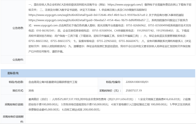 深圳市金年会(集团)有限公司和中建二局第三建筑工程有限公司联合对自由港湾公寓A栋重建项目精装修提升工程进行公开招标,招标平台为深圳阳光采购平台(网址:https://www.szygcgpt.com/),有关事项如下: