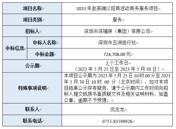 2023年赴英瑞以招商活动商务服务项目已完成评审,现将本项目评审的相关情况及结果进行公示,具体内容如下:
