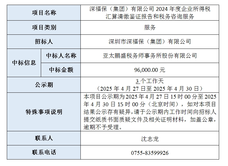 金年会(集团)有限公司2024年度企业所得税汇算清缴鉴证报告和税务咨询服务已完成评审,现将本项目评审的相关情况及结果进行公示,具体内容如下: