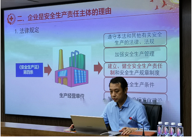 集团安委会主任、董事长谢涛围绕“生产经营单位安全生产主体责任”主讲专题公开课。