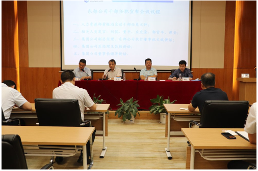 6月29日,集团董事长谢涛和总经理王昌栋出席东部公司、园区公司干部任命大会,并进行工作调研。