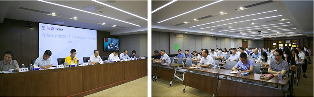 谢涛董事长作《埋头苦干、狠抓落实,奋力完成各项目标任务》的讲话。他强调,下半年,各单位要分析研究本单位的重点任务,找准解决问题的思路,拿出具体措施,发挥员工的聪明才智,埋头苦干,狠抓落实,奋力完成年度各项目标任务。一是要坚持目标导向,问题导向,以钉钉子精神推动工作任务完成。要将销售作为最重要、最核心的工作,拿出切实有效措施实现突破,回笼资金;在建工程要抓好现场协调组织和施工安排,千方百计抢回工期进度;项目拓展要加强工作协同,积极寻求支持。财务部门提前筹划资金保障;二是重视战略统领和落地,大力推进集团转型。产业空间板块继续与国资系统企业协同,与长沙、惠州方面商谈合作项目;产业科技服务板块要争取设立以集团为主的产业投资基金,福保surfbox要拓展平台用户,组建知识产权服务团队以及争取成为电子元器件国际贸易集散中心建设运营主体;轻资产服务板块要依托集团在专业化园区运营的经验和生物医药园、科技生态园等园区良好的示范作用,拓展深莞惠乃至大湾区的轻资产运营项目,强调企业战略的统领性。三是强化法人治理,提高执行力,提升管理提质增效。要真正强化法人治理结构,厘清董事会、监事会、经营班子的职责。四是重视党建的引领性,党员带头,促进集团健康快速发展。弘扬中国共产党成立100周年伟大建党精神,提高政治站位,发挥政治引领作用;发扬“攻关”精神,点燃干事热情;知行合一,把学习成效转化为企业发展新动力。